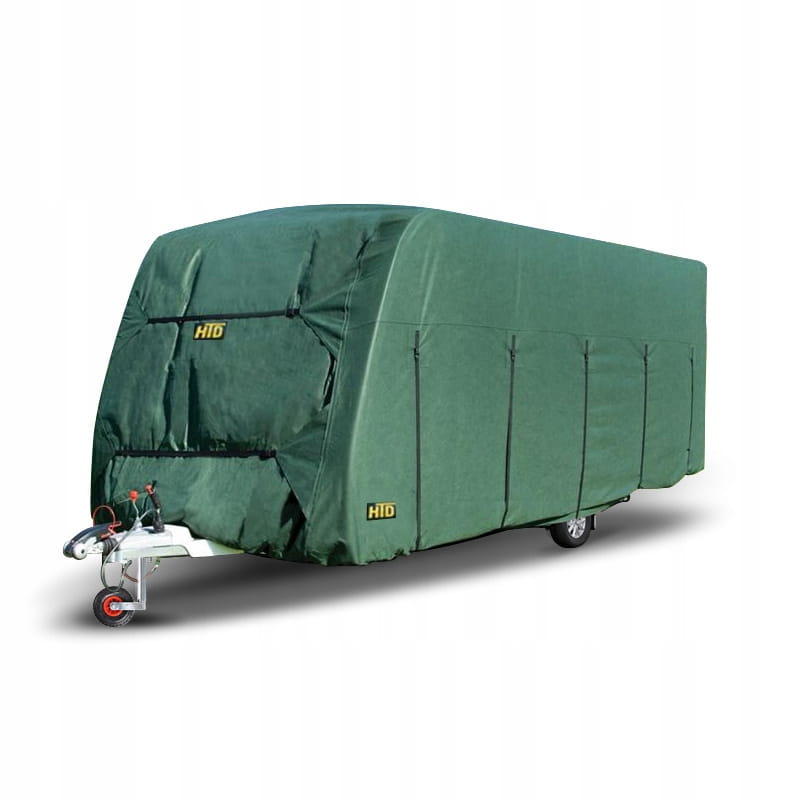Husă pentru caravană destinată utilizării pe tot parcursul anului, realizată din materiale de înaltă calitate, rezistente la intemperii, de la renumita marcă HTD.
