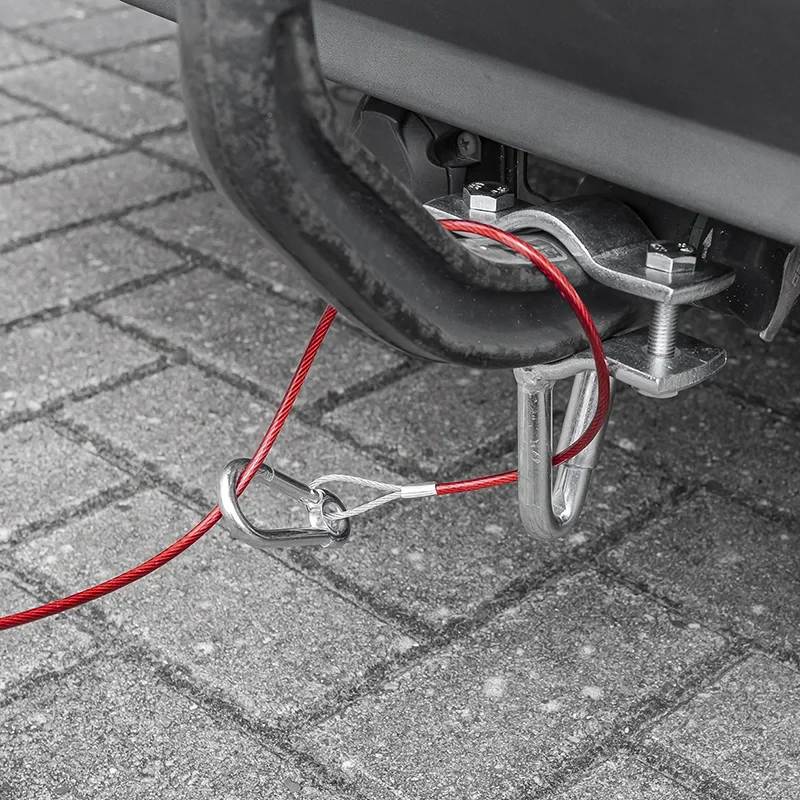 ➡️ Cablul de siguranță din oțel este utilizat pentru protejarea remorcii în cazul desprinderii accidentale de vehicul. În situații de urgență, acesta activează mecanismul de frânare, ajutând la oprirea remorcii și crescând siguranța în trafic.