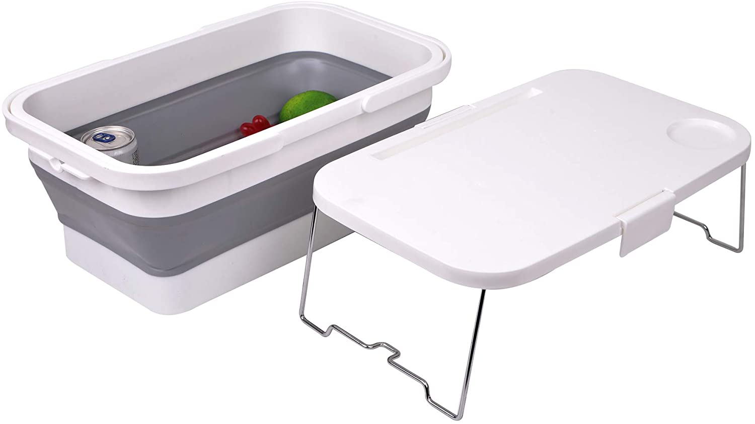 Atunci când cele 2 suporturi pliabile sunt desfășurate, capacul coșului devine o masă. Suprafața mesei are o fantă pentru o tabletă și o adâncitură pentru o ceașcă.
