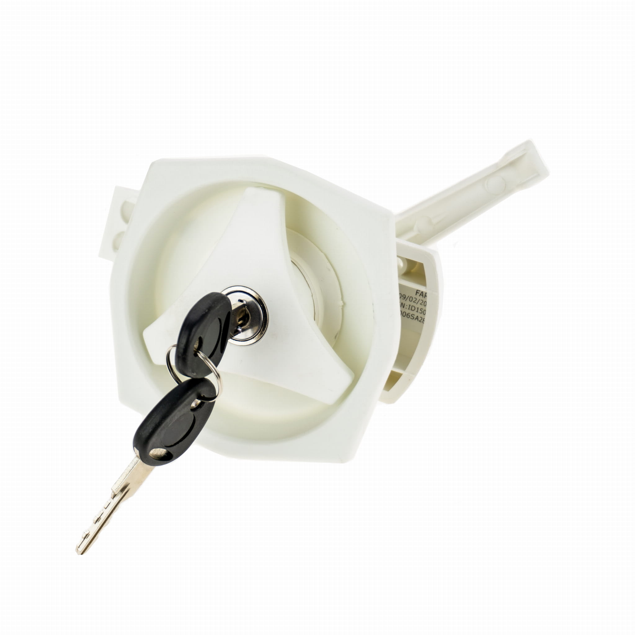 Încuietoarea de intrare a ușii de remorcă este completă, furnizată cu cheie și inserție. Există opțiunea de a înlocui cilindrul, dacă este necesar, cu condiția să aveți abilitățile necesare pentru a face acest lucru. Oferim, de asemenea, cilindri cu cheie FF2 care sunt compatibili cu această încuietoare.