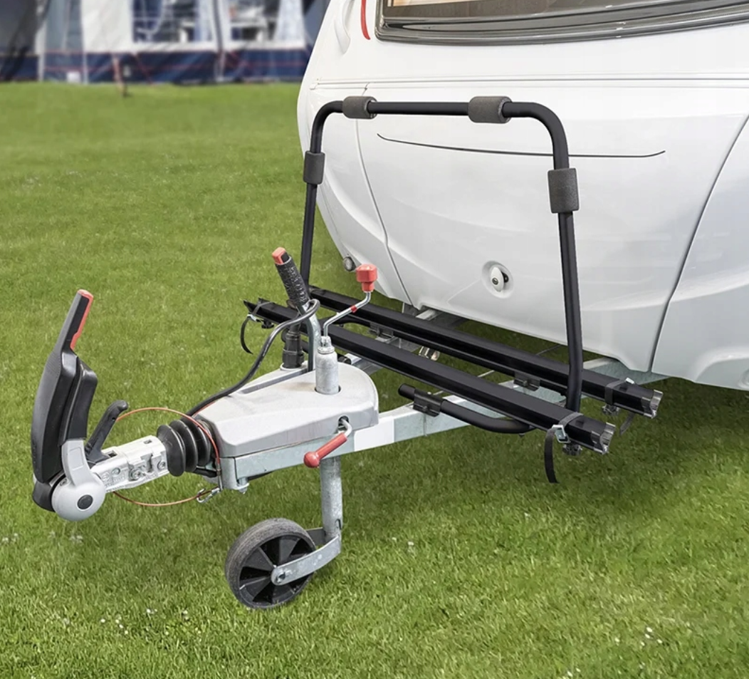 Suport de biciclete HTD pentru bara de tracțiune a caravanei | suport pentru 2 biciclete | suport de biciclete pentru bara de tracțiune a caravanei sau rulotei | suport puternic pentru bara de tracțiune a caravanei | suport de aluminiu | suport de biciclete pentru bara de tracțiune a caravanei | camping